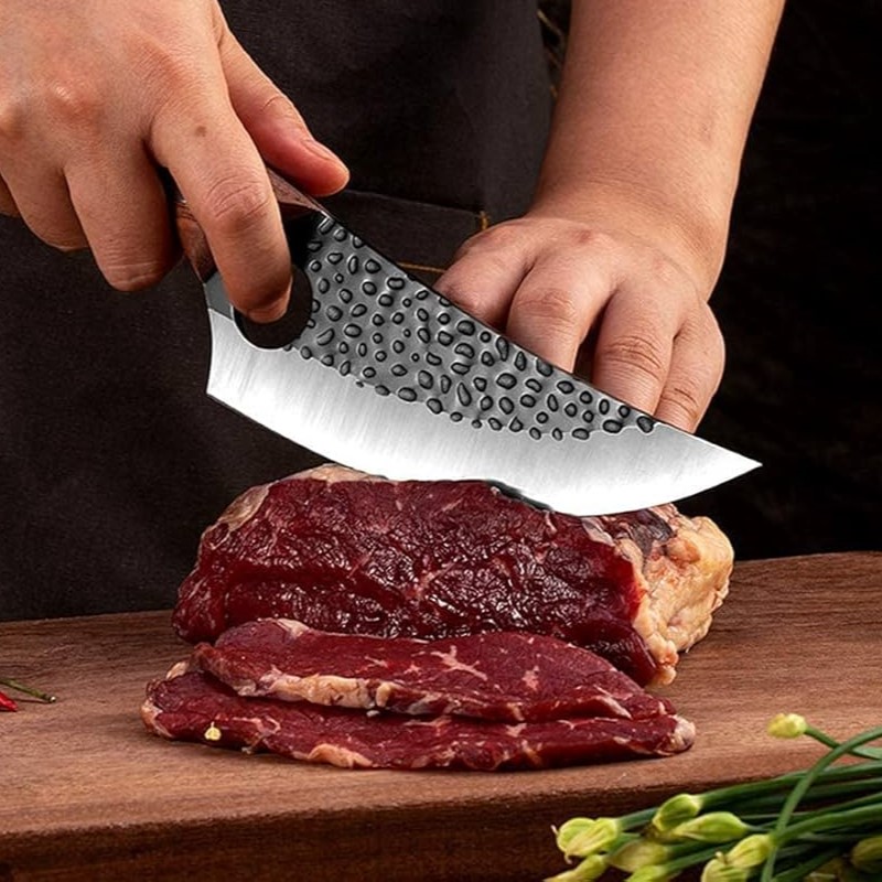 - Matériaux : acier inoxydable, acier plaqué à haute teneur en carbone forgé à la main, acier au manganèse